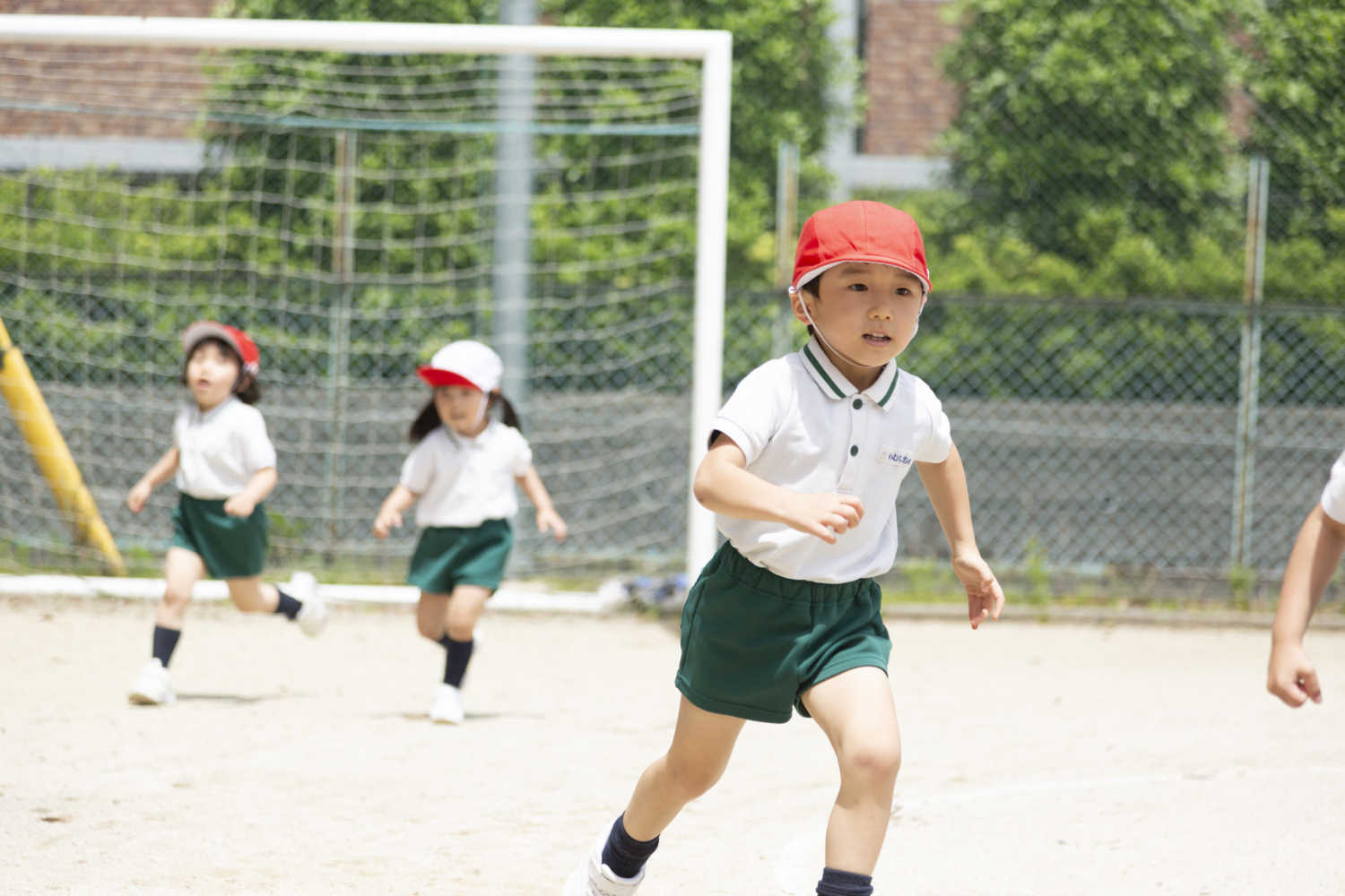 かけっこをする時、先生たちは園児に向けて「かけっこだよー!これは“頑張る心”かな?」