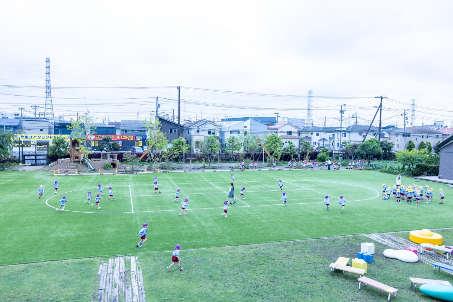 人工芝の上で遊ぶ子どもたち