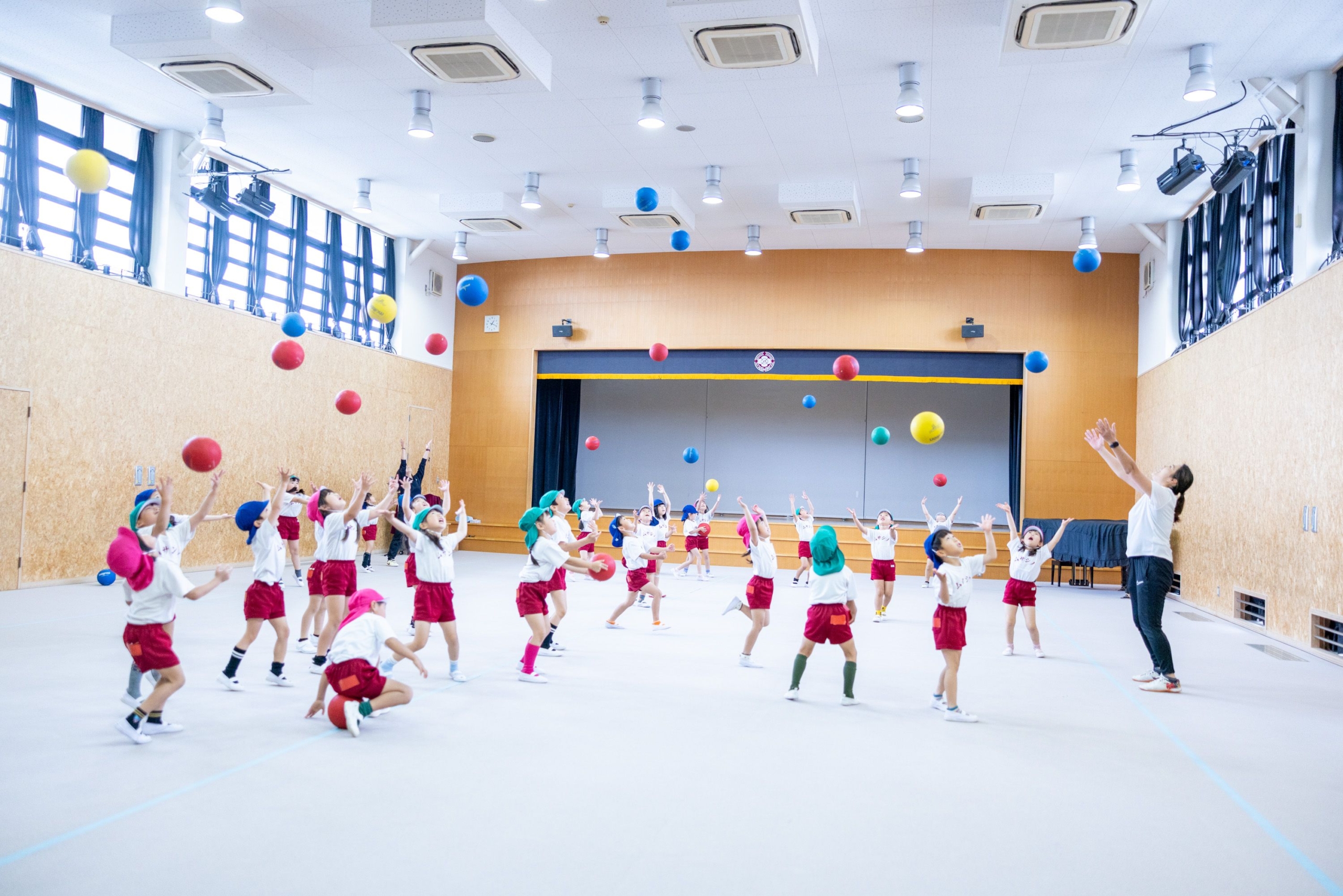 ボール遊びをする園児たち