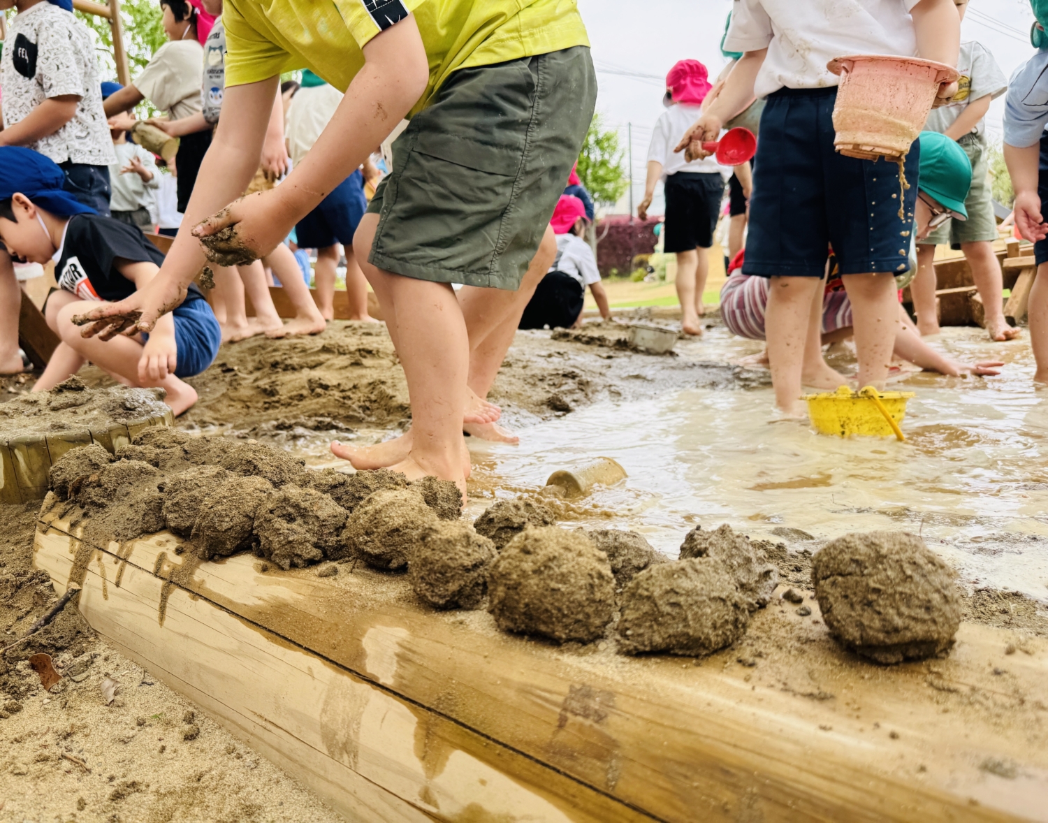 どろんこ遊びを楽しむ園児たち