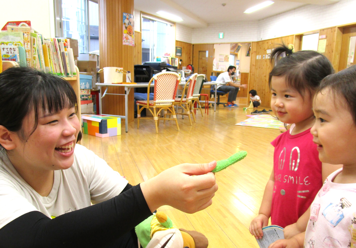 園児とおままごとをする先生