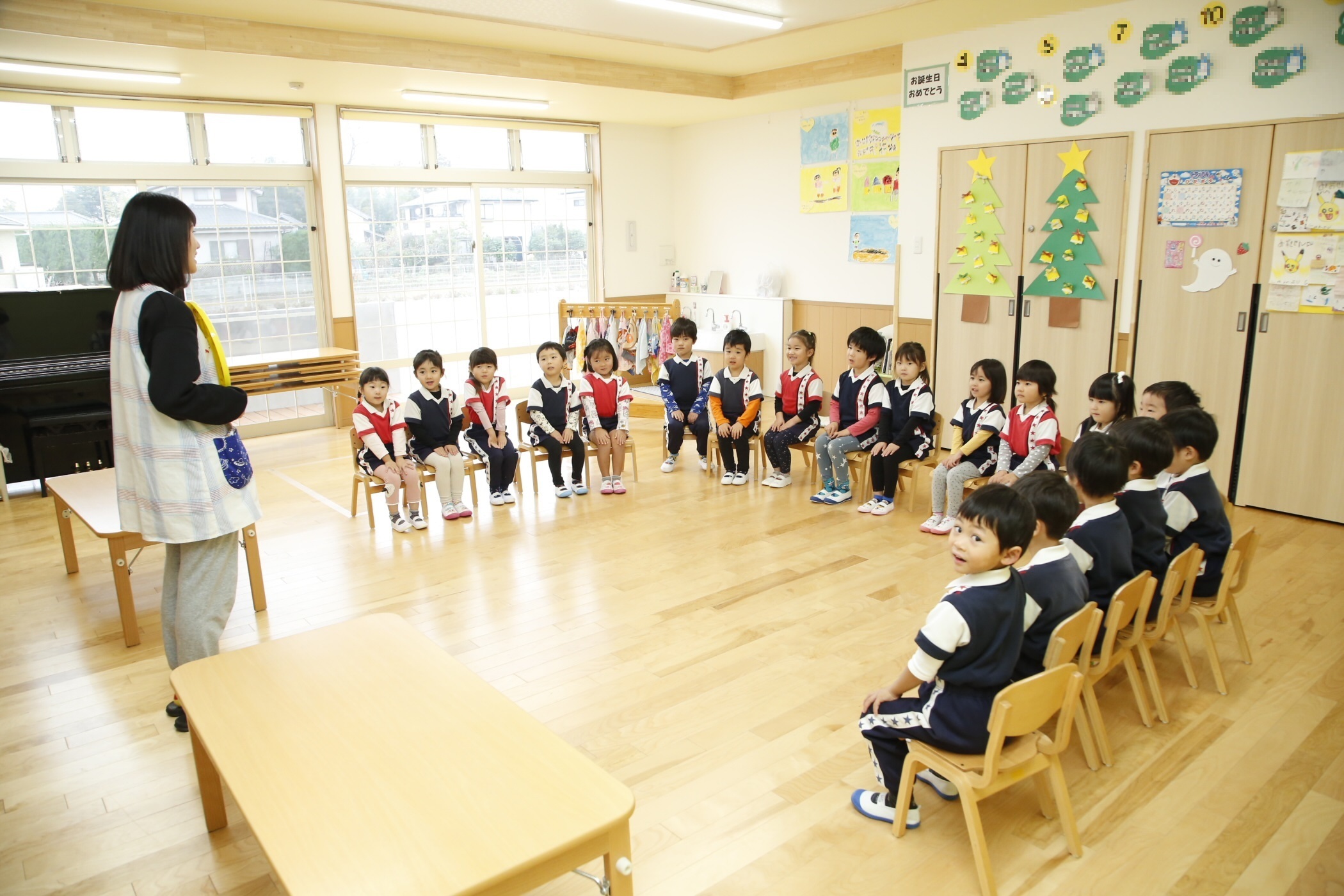 集中して先生の話を聞く園児たち